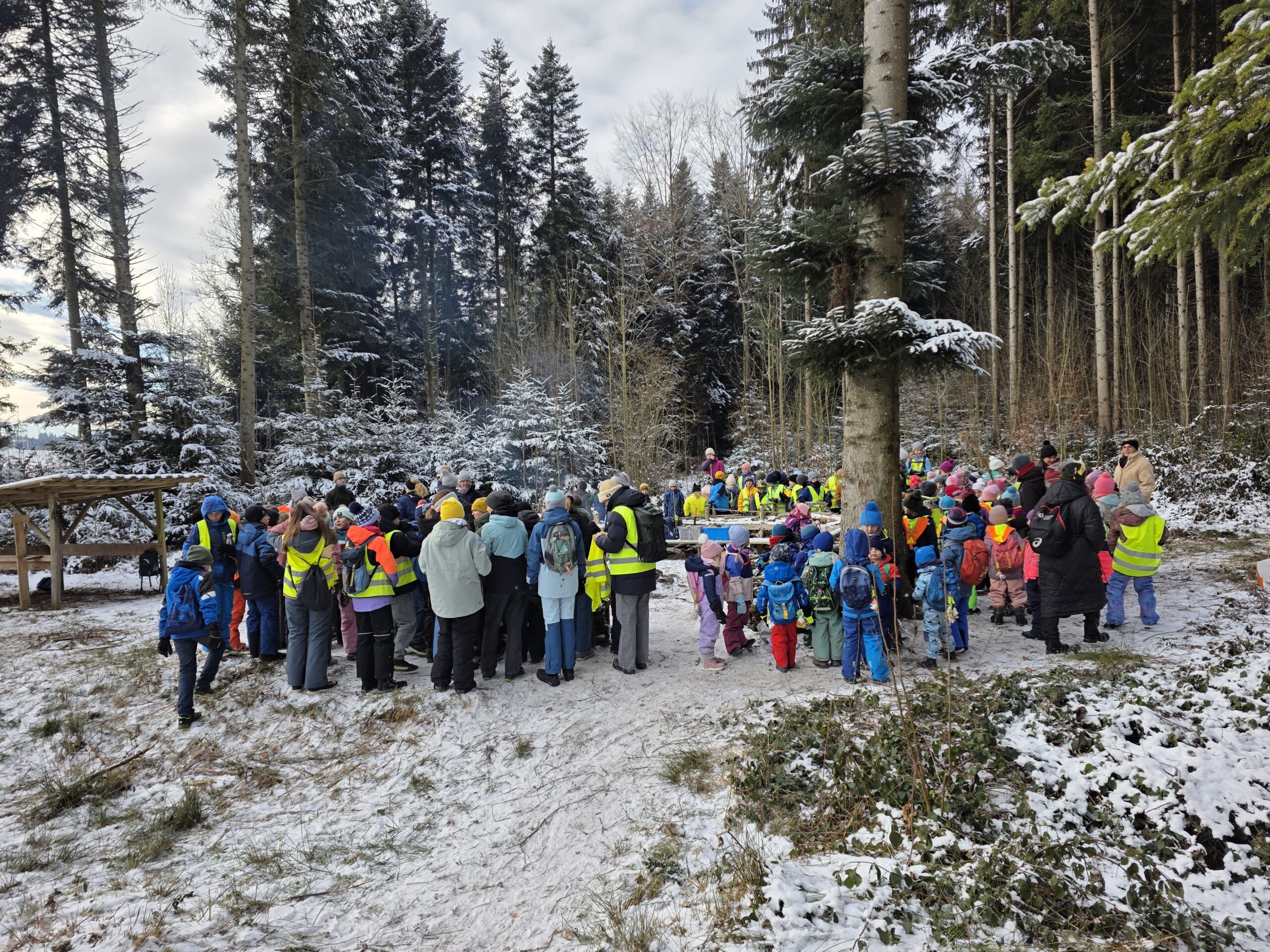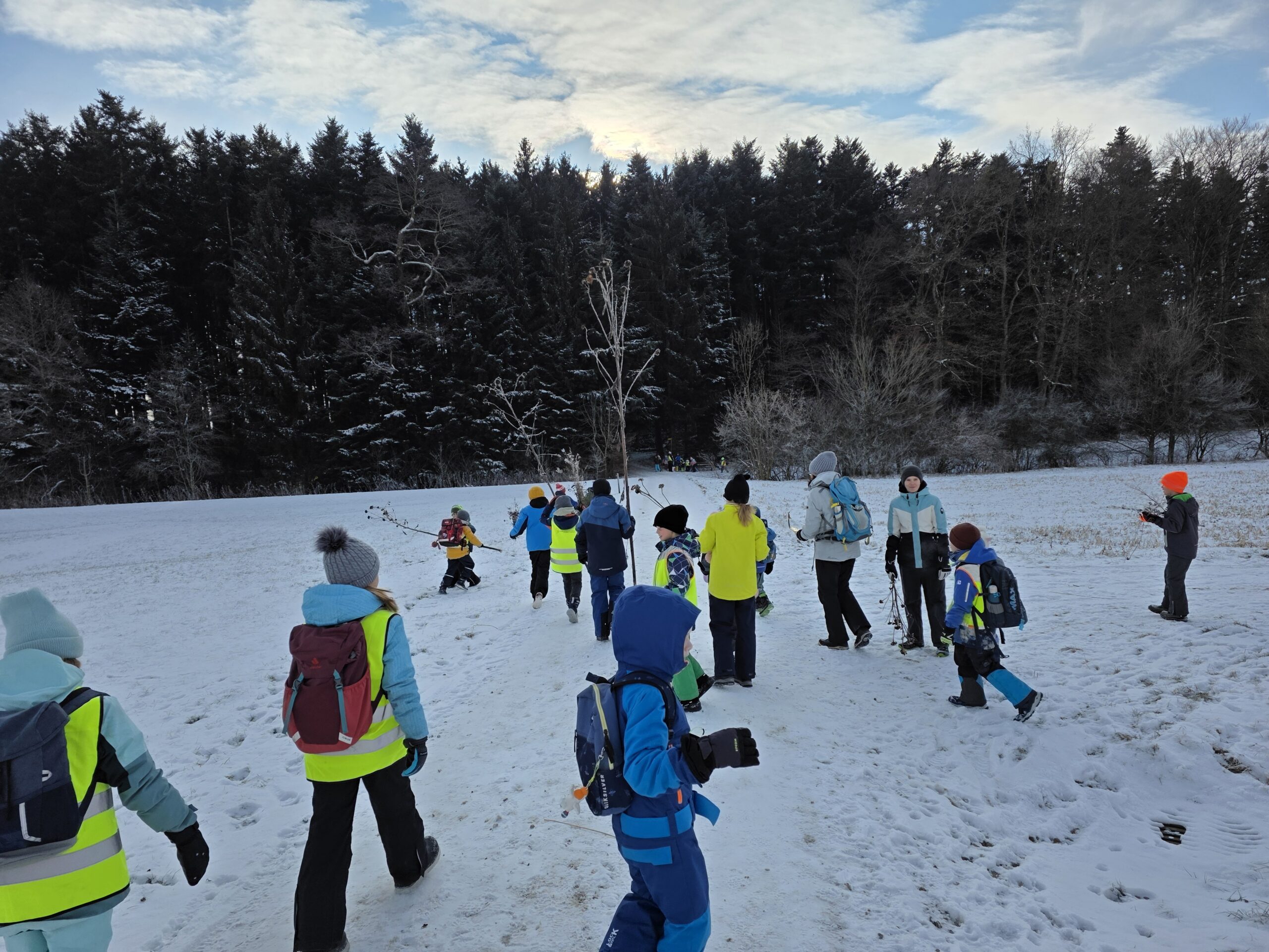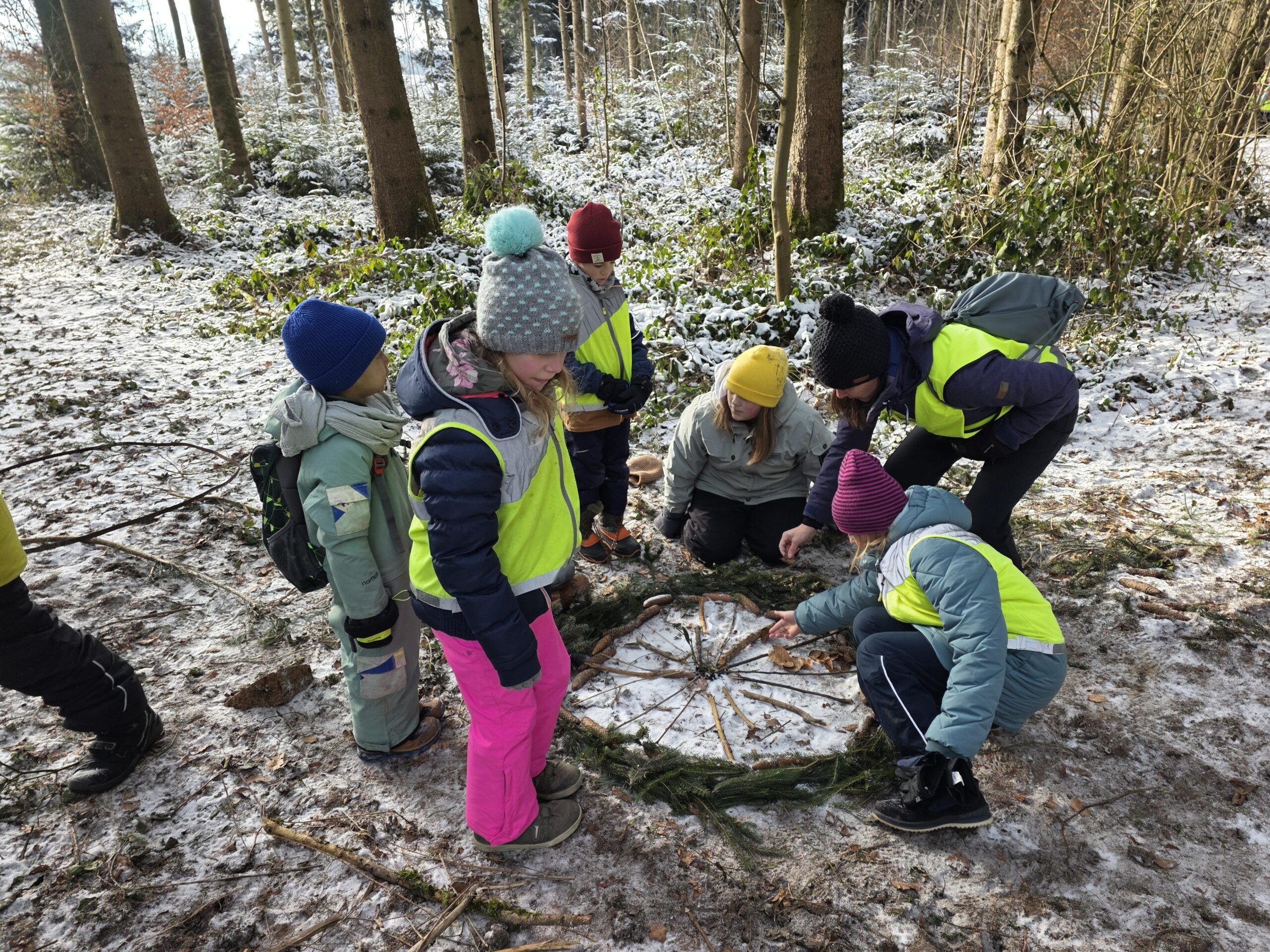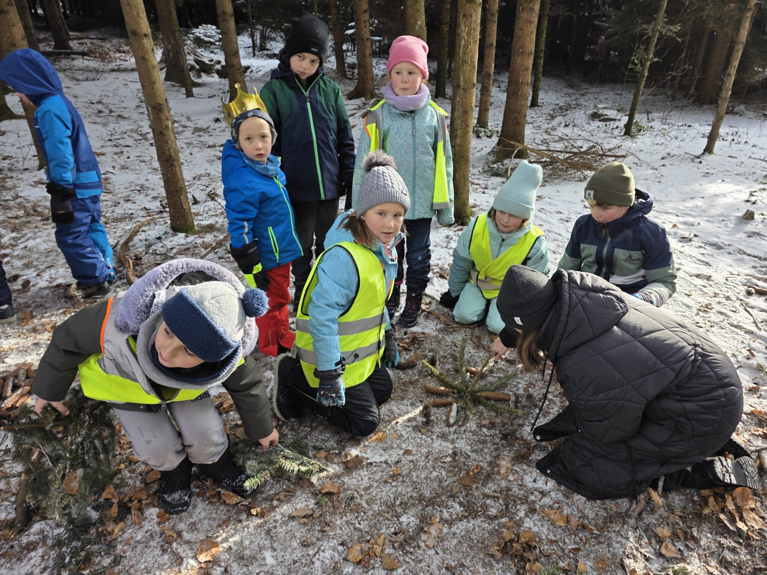 Um 9:30 Uhr trafen sich alle Klassen in der Aula. Dort erklärten die Lehrpersonen den Ablauf. Danach wurden alle Kinder vom Kindergarten bis zur 6. Klasse in Gruppen aufgeteilt. Dann bekam jede Gruppe einen leckeren Dreikönigskuchen. Als alle in ihren Gruppen waren, haben alle ein Stück gegessen und gehofft, dass sie einen der drei Könige darin finden.  Danach haben sich alle auf den Weg gemacht. Alle Gruppen nahmen einen etwas anderen WegAnstatt nur zu laufen, sammelten alle Gruppen Blumen, Rinden, Tannenzapfen und viele andere Naturmaterialien ein. Als alle Kinder beim Waldsofa ankamen, wartete dort bereits ein warmes Feuer auf sie. Die Gruppen legten mit den Materialien, die sie auf dem Weg gesammelt hatten, ein Mandala. Danach durfte man die Mandalas der anderen Gruppen anschauen gehen. Nachdem das Jahreslied „Chliini Händ“ gesungen war, machten sich alle Kinder in ihren Klassen wieder auf den Weg nach Hause. Der Dreikönigsspaziergang hat allen Spass gemacht.