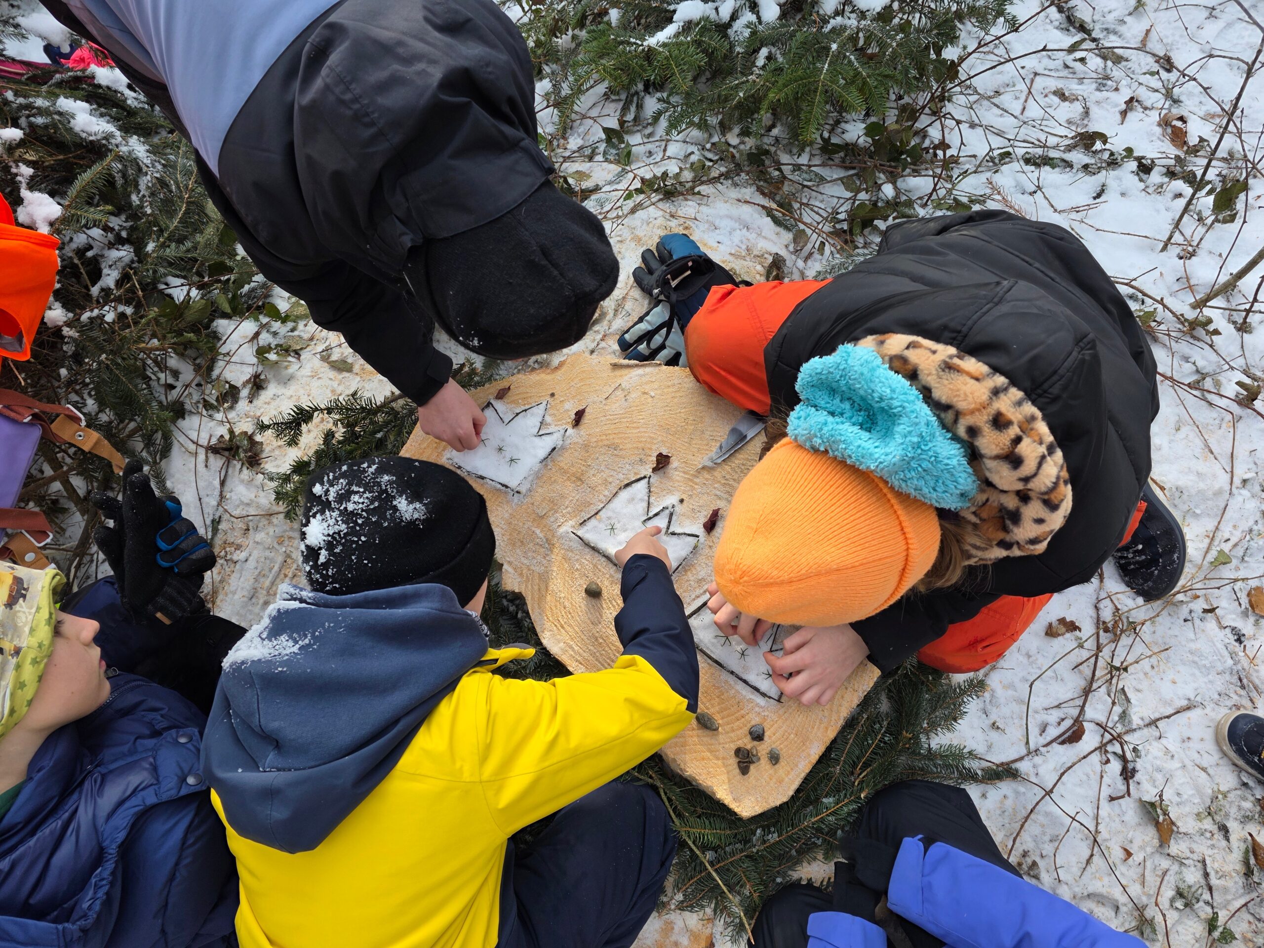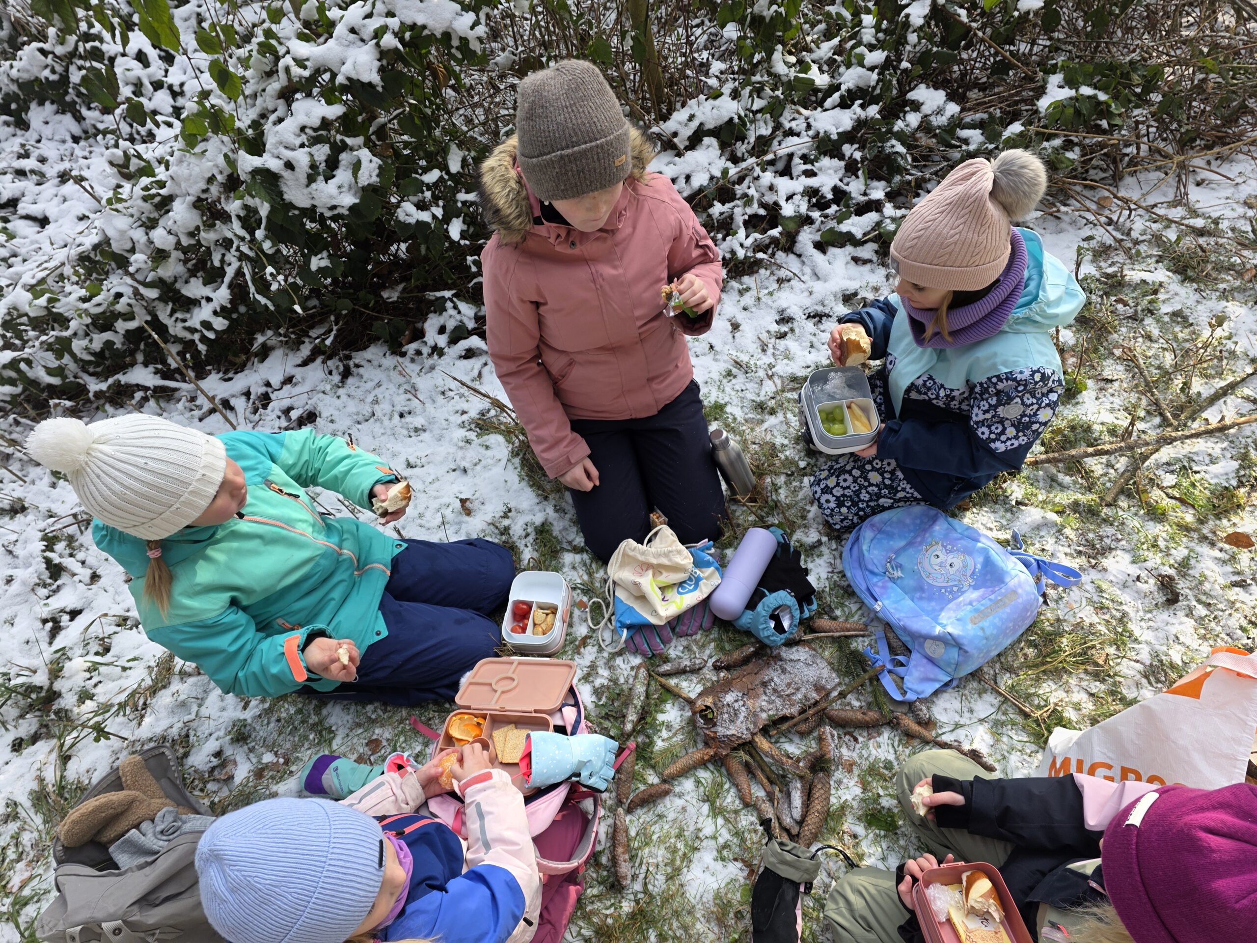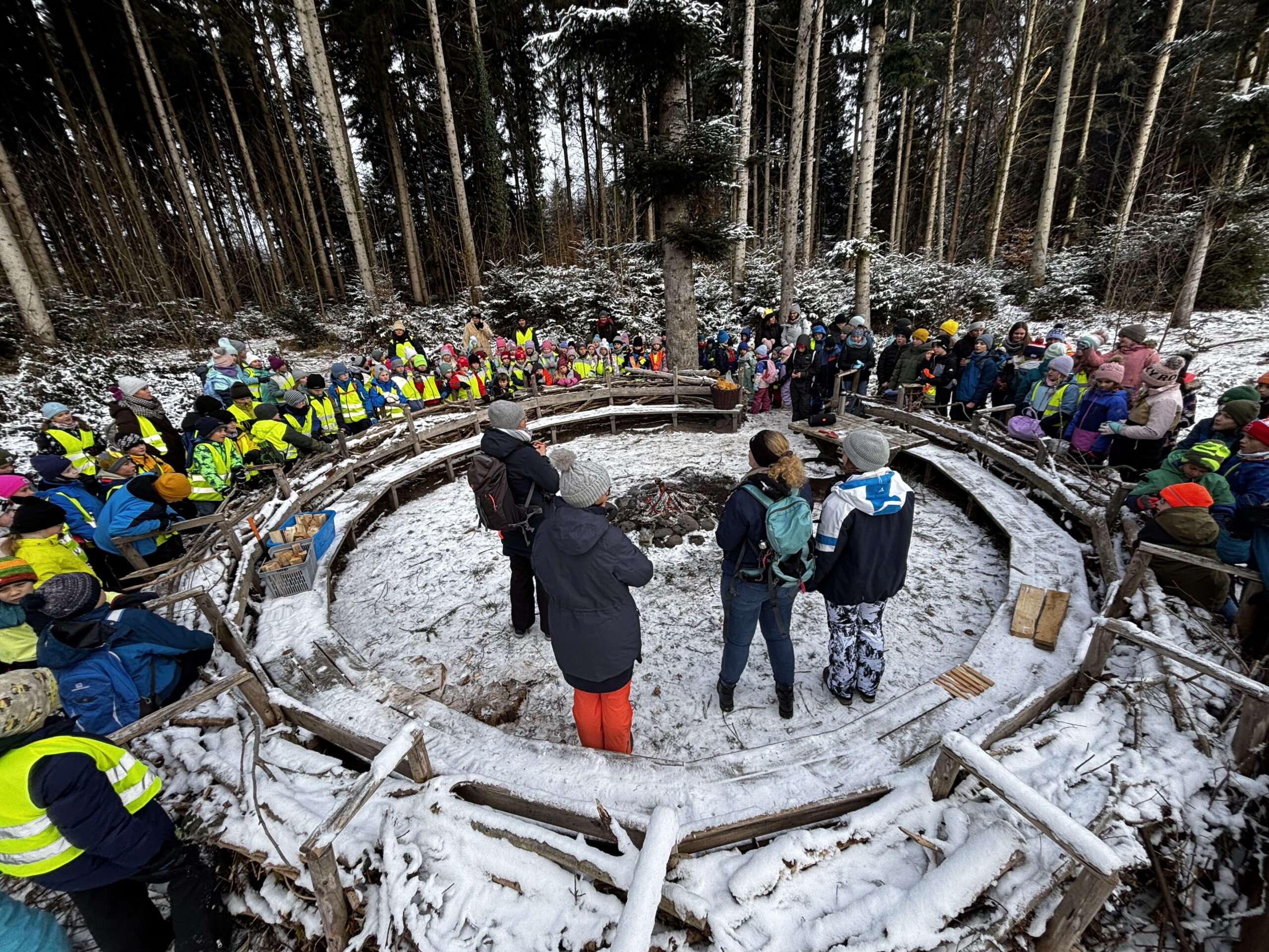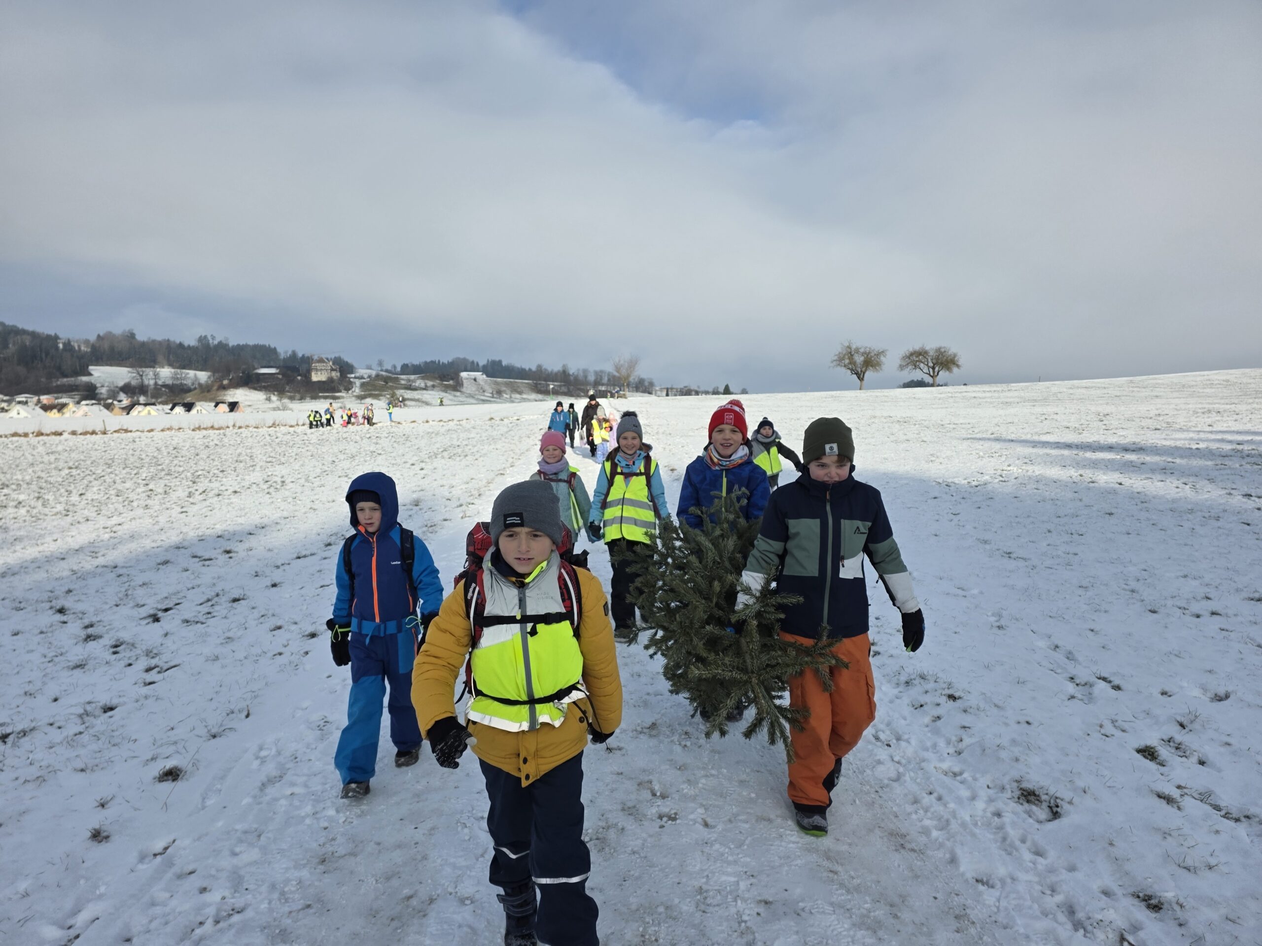Um 9:30 Uhr trafen sich alle Klassen in der Aula. Dort erklärten die Lehrpersonen den Ablauf. Danach wurden alle Kinder vom Kindergarten bis zur 6. Klasse in Gruppen aufgeteilt. Dann bekam jede Gruppe einen leckeren Dreikönigskuchen. Als alle in ihren Gruppen waren, haben alle ein Stück gegessen und gehofft, dass sie einen der drei Könige darin finden.  Danach haben sich alle auf den Weg gemacht. Alle Gruppen nahmen einen etwas anderen WegAnstatt nur zu laufen, sammelten alle Gruppen Blumen, Rinden, Tannenzapfen und viele andere Naturmaterialien ein. Als alle Kinder beim Waldsofa ankamen, wartete dort bereits ein warmes Feuer auf sie. Die Gruppen legten mit den Materialien, die sie auf dem Weg gesammelt hatten, ein Mandala. Danach durfte man die Mandalas der anderen Gruppen anschauen gehen. Nachdem das Jahreslied „Chliini Händ“ gesungen war, machten sich alle Kinder in ihren Klassen wieder auf den Weg nach Hause. Der Dreikönigsspaziergang hat allen Spass gemacht.