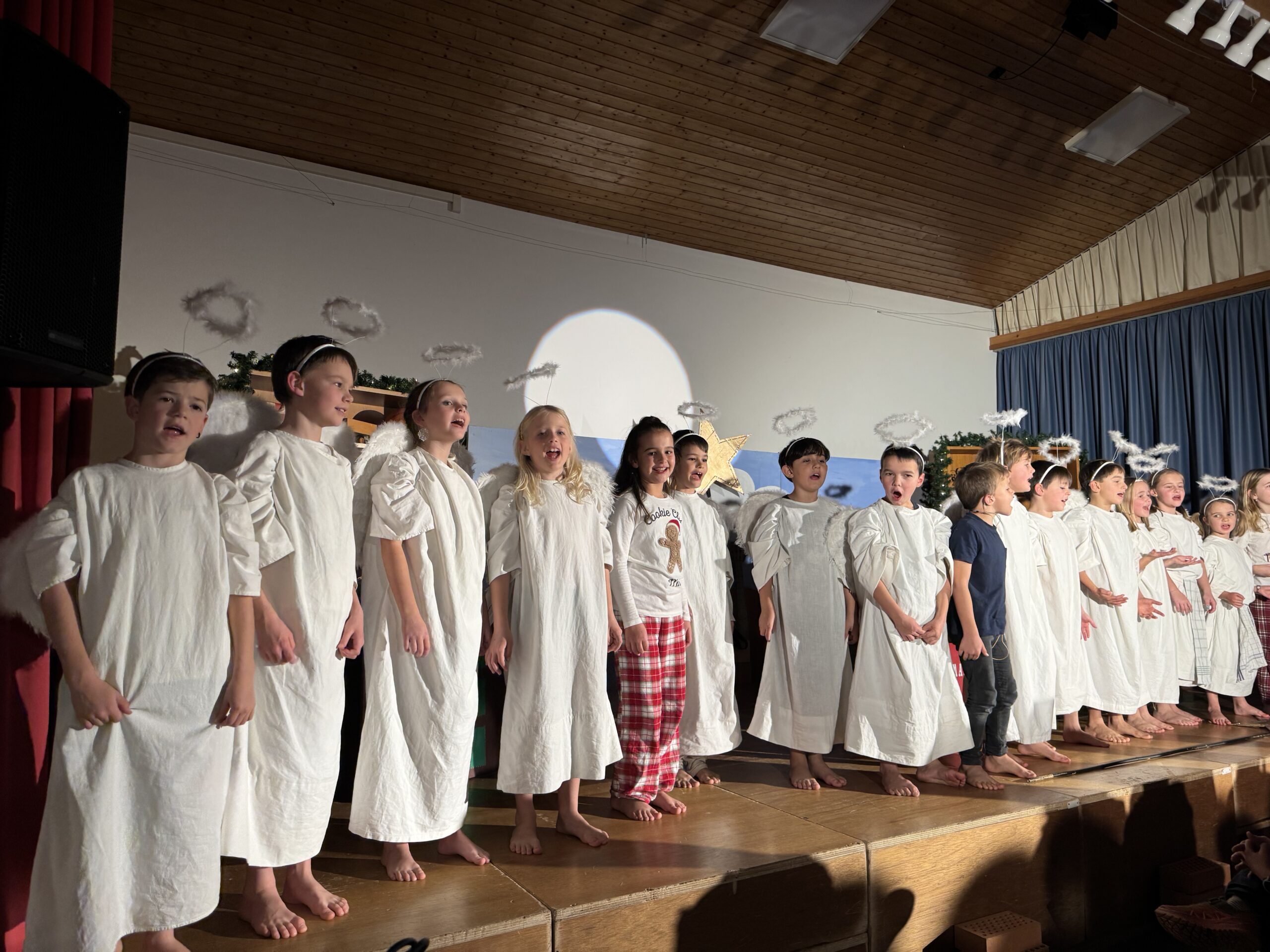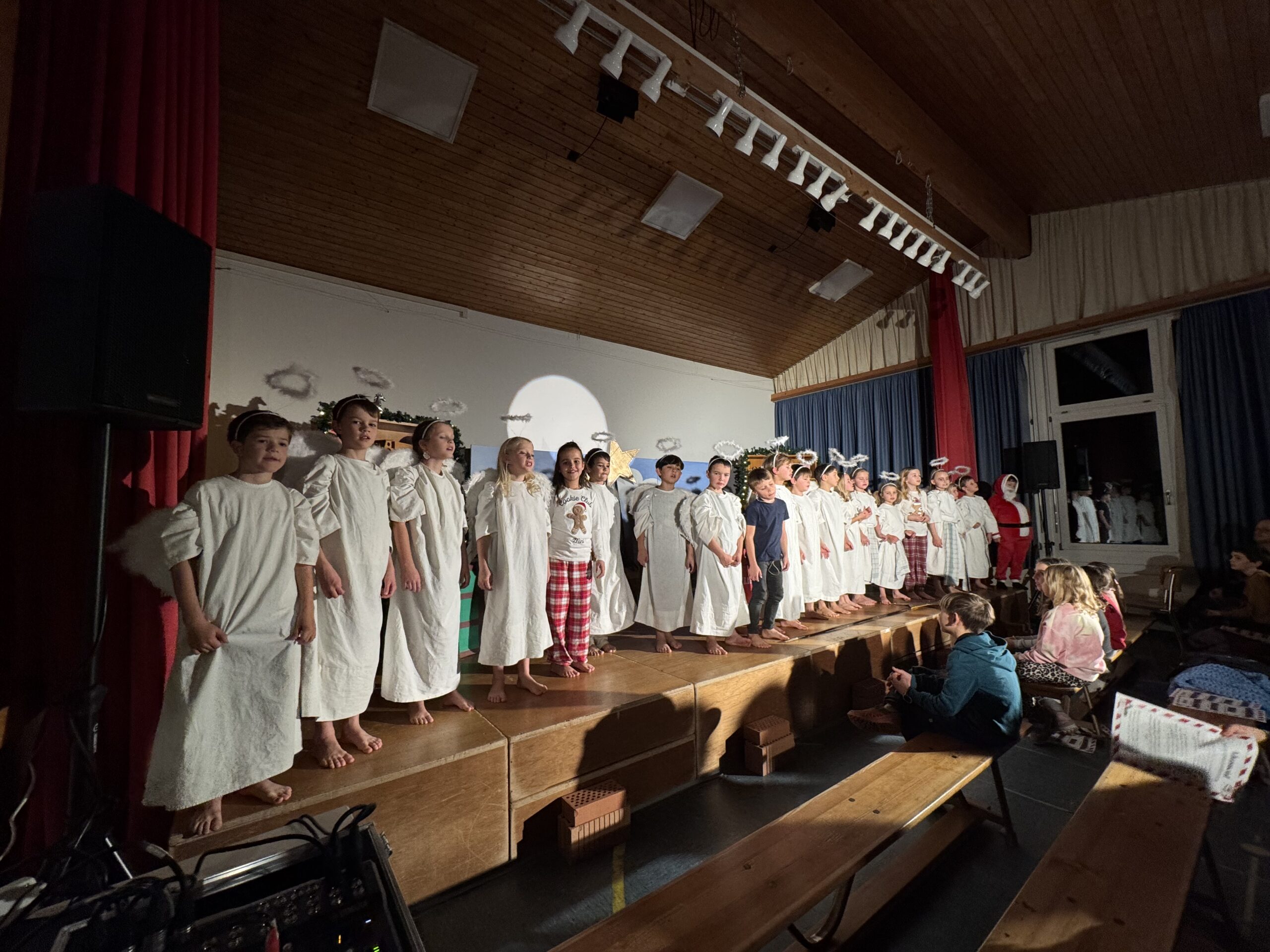 Wir fragten uns, wie sie es wohl geschafft hatten, in so kurzer Zeit alles so passend und spektakulär wirken zu lassen. Es war, als würden wir in einem Theater sitzen und echten Schauspielerinnen und Schauspielern zusehen. Dieses Musical übertraf ein richtiges Theaterstück sogar bei weitem. Es war der perfekte Einstieg in die Adventszeit.