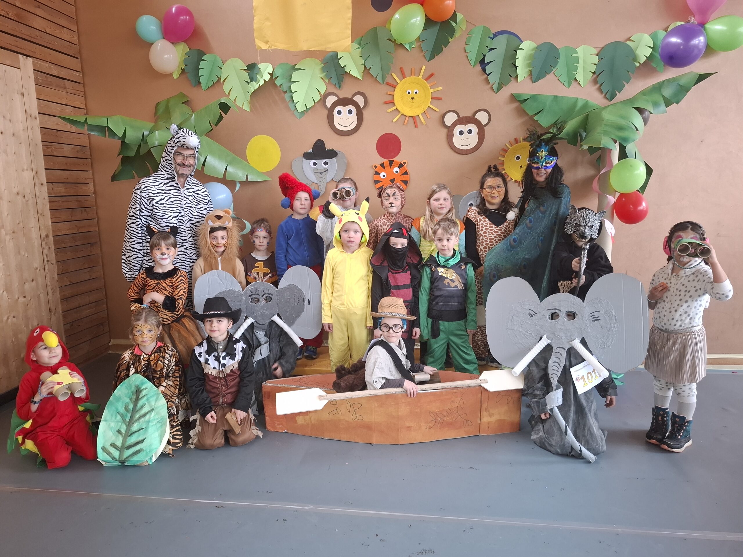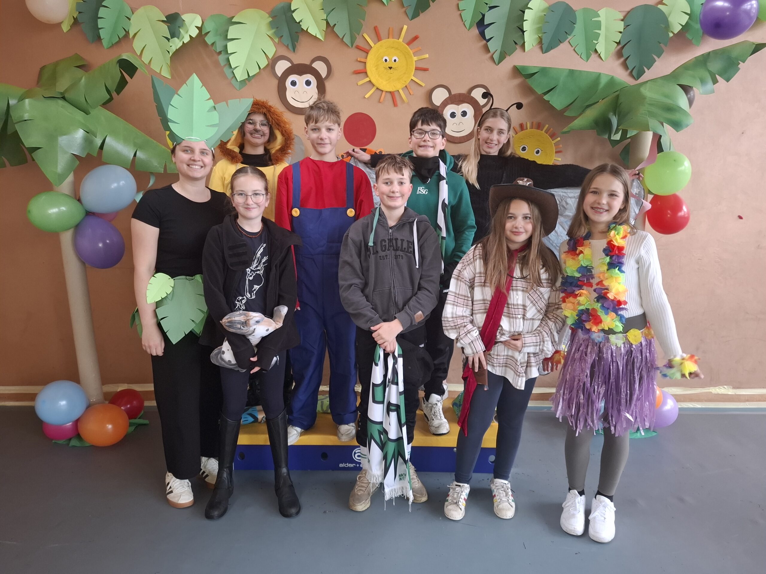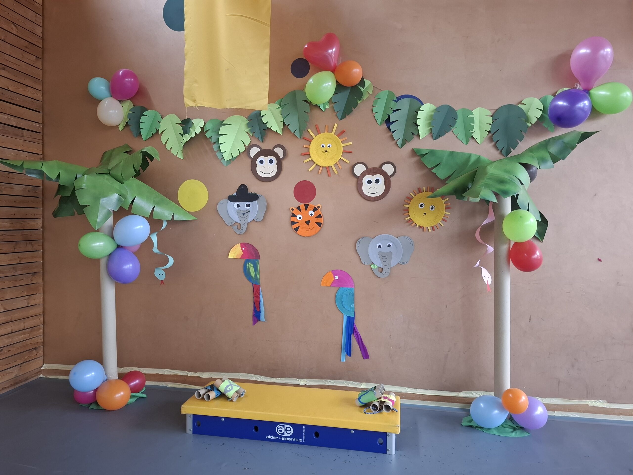 Bereits am vergangenen Donnerstag begannen wir mit den ersten Vorbereitungen für die Fasnacht. In den Ateliers gestalteten die Schülerinnen und Schüler passend zum diesjährigen Motto “Im Dschungel” Papiergirlanden, Palmen, Blättergirlanden, Ferngläser und verschiedene Dschungeltiere aus Papptellern.