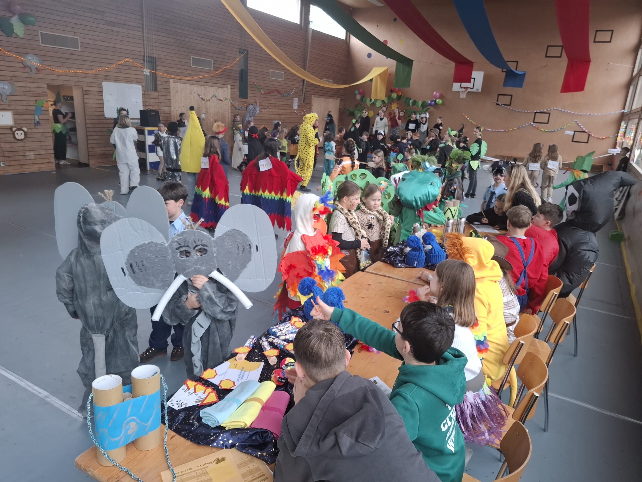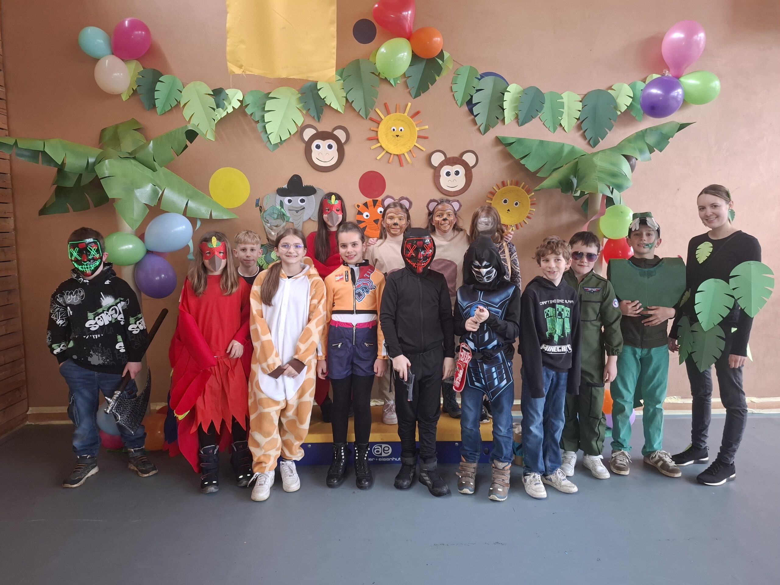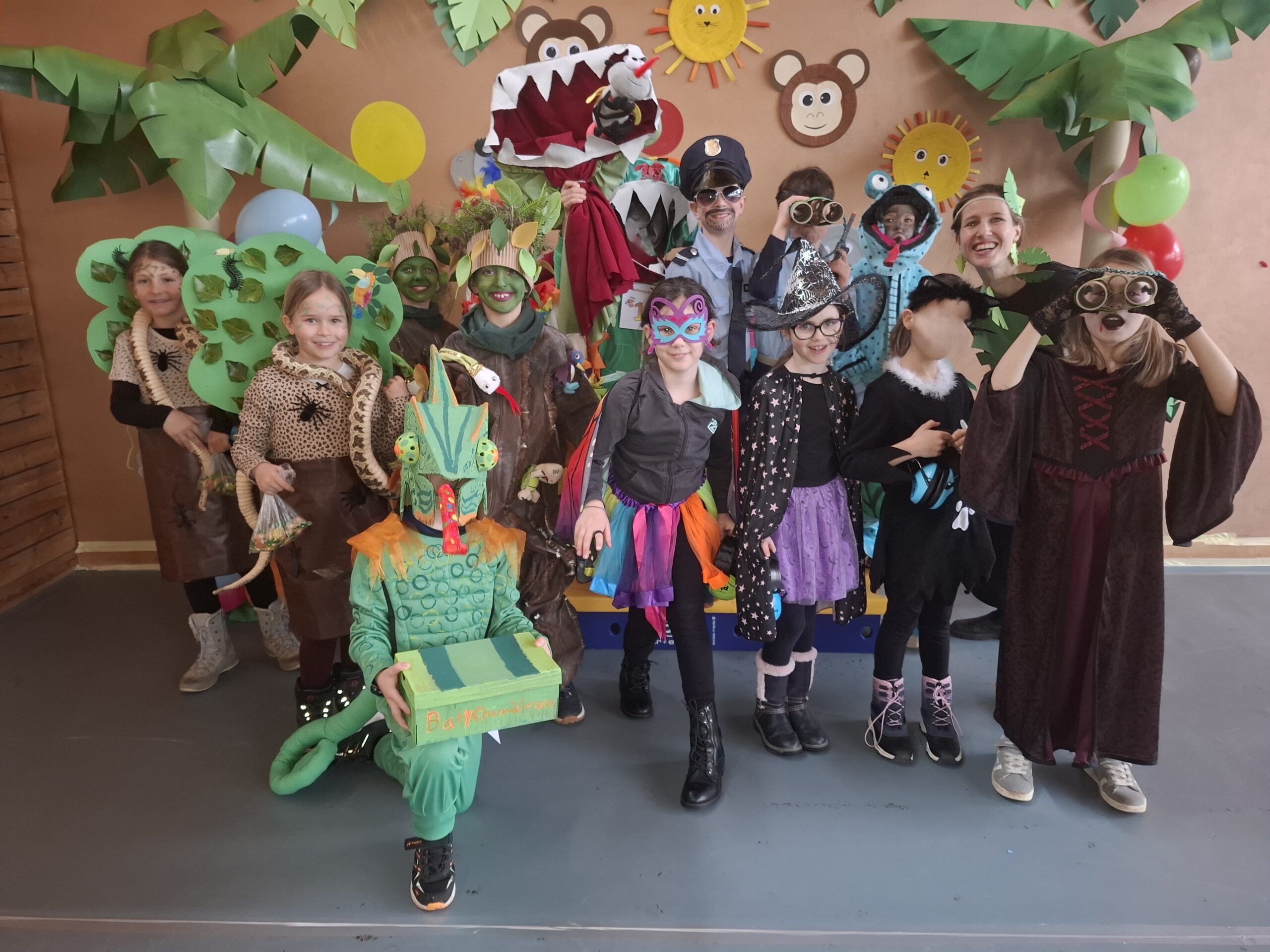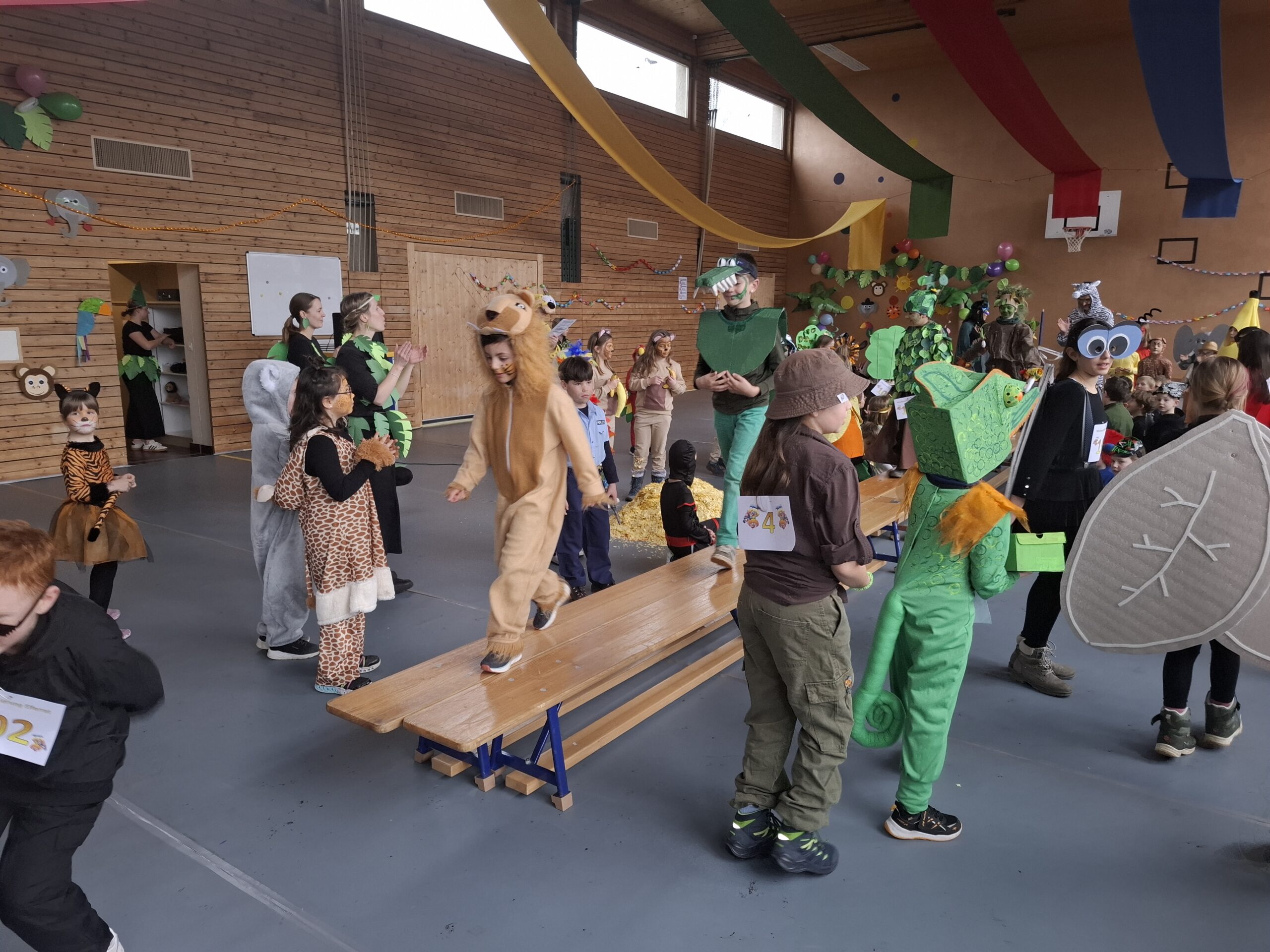Bereits am vergangenen Donnerstag begannen wir mit den ersten Vorbereitungen für die Fasnacht. In den Ateliers gestalteten die Schülerinnen und Schüler passend zum diesjährigen Motto “Im Dschungel” Papiergirlanden, Palmen, Blättergirlanden, Ferngläser und verschiedene Dschungeltiere aus Papptellern.