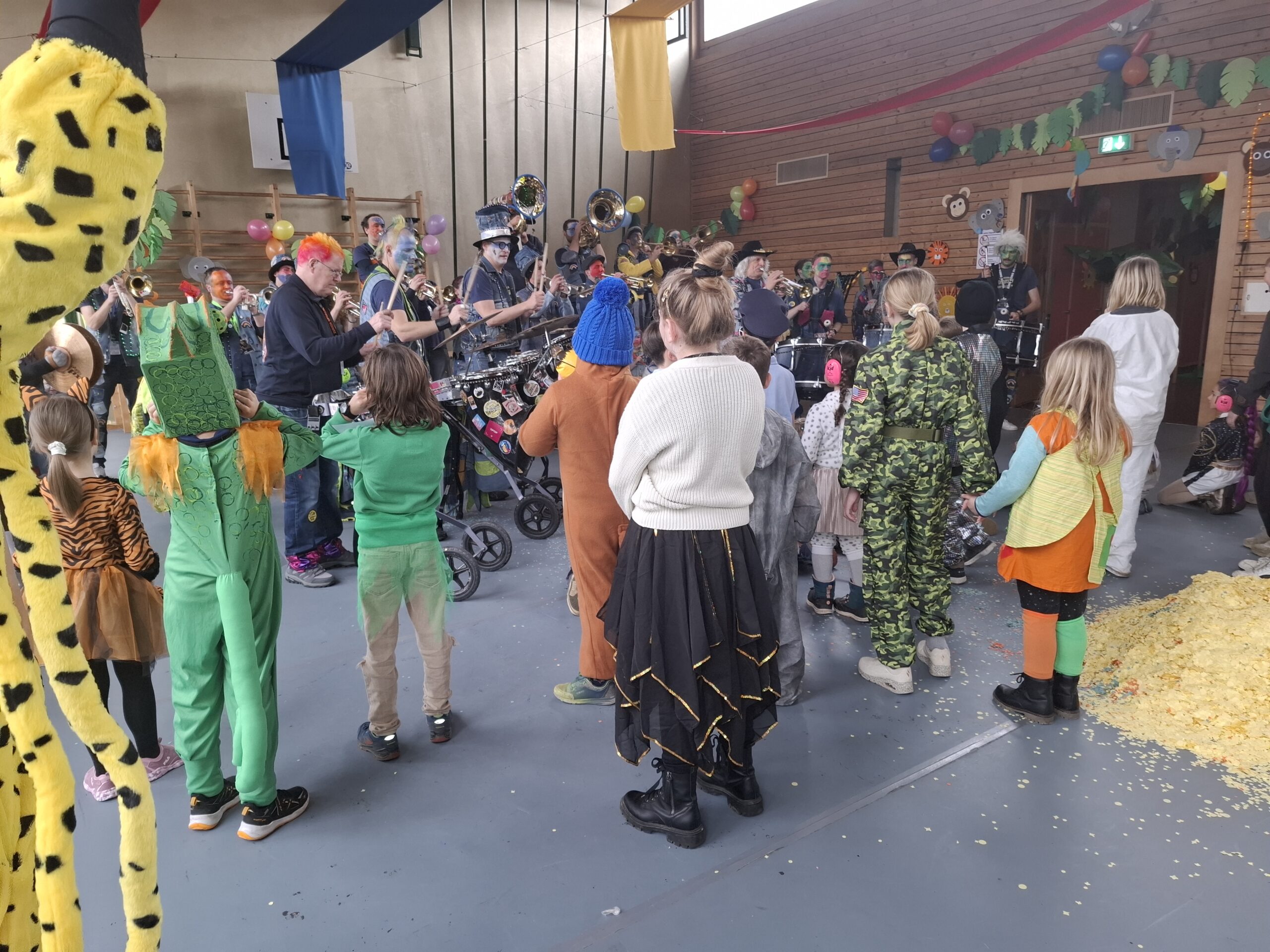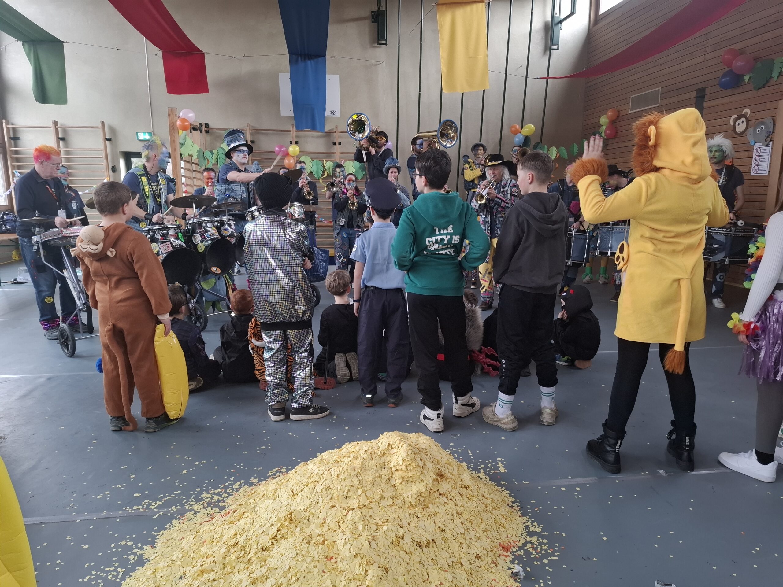 Die Guggenmusik «Utzepatscher» stand am Ende der Prämierung bereits in den Startlöchern und sorgte für einen weiteren Höhepunkt des Nachmittags. Im Anschluss eröffnete die Guggenmusik die langersehnte Konfettischlacht. Mit diesem traditionellen Höhepunkt endete der Fasnachtsnachmittag. Voller Konfetti, aber glücklich und zufrieden machten wir uns nach einem gelungenen Nachmittag auf den Weg nach Hause.