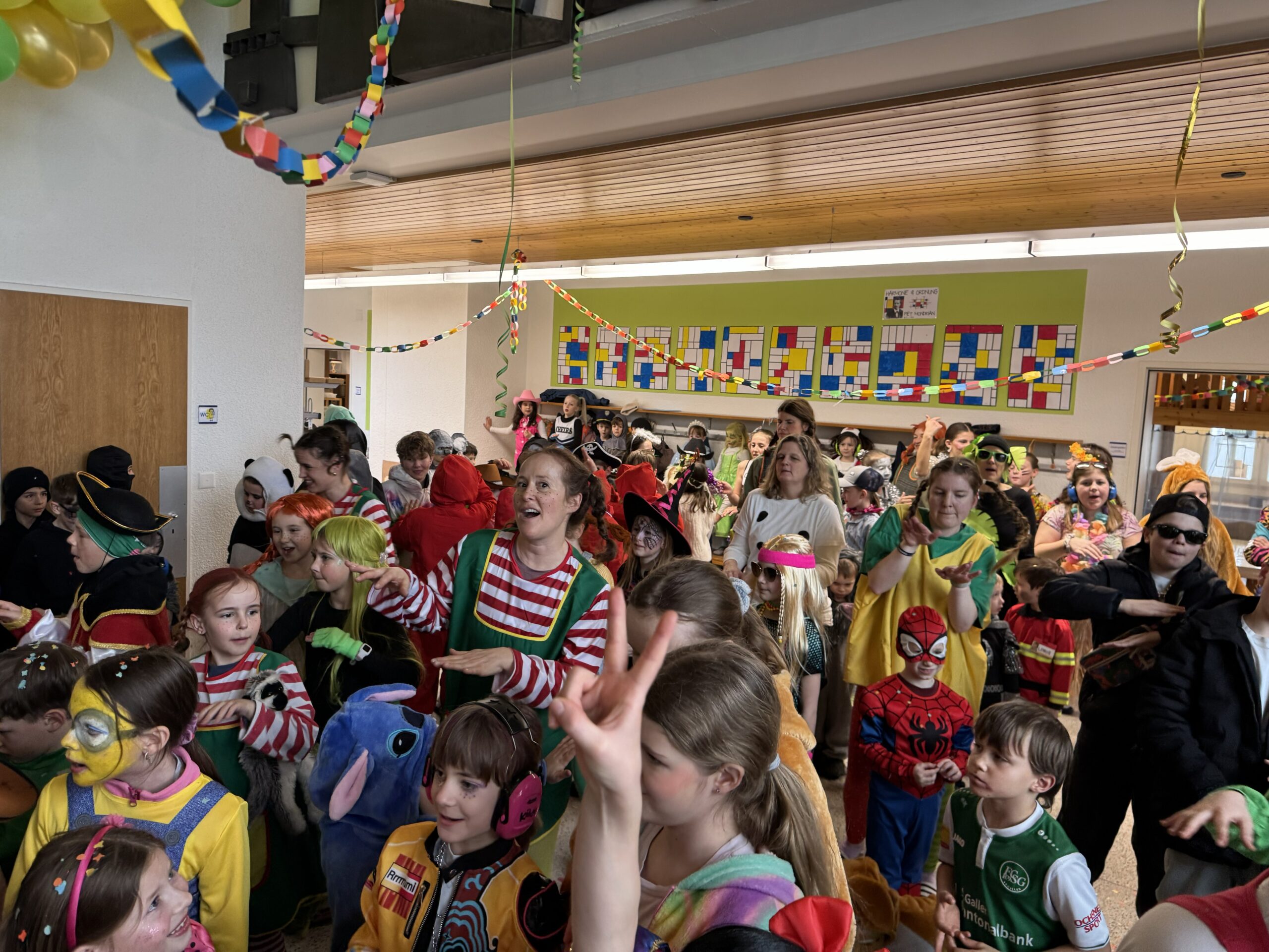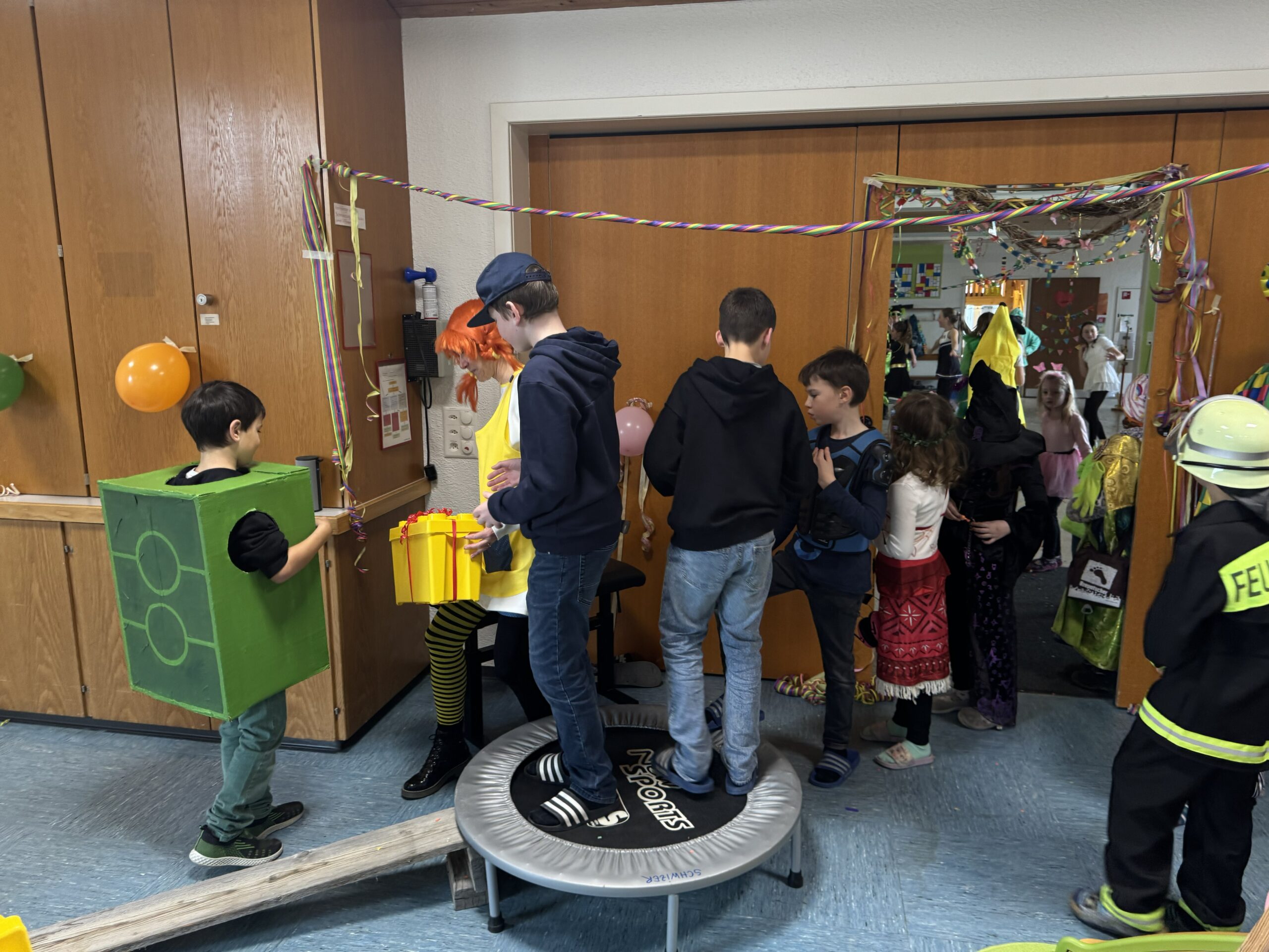 Verschiedenen Stationen luden die Kinder zur Teilnahme an Pippis kunterbuntem Fasnachtsfest ein. Verteilt im ganzen Schulhaus gab es die Möglichkeit Challenges zu bestreiten, sich auszutoben, zu geniessen, zu lachen und zu tanzen.